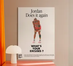 Un personnage dynamique court avec détermination sous la phrase "EXERCISE YOUR DEMONS". Des couleurs vives et une tenue athlétique donnent à l'image un caractère motivant et plein d'entrain.