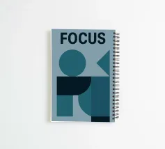 Clear, modern design poster with the word FOCUS. Geometric shapes in calming blue tones draw the eye to the essentials - ideal for studies, offices or creative spaces.