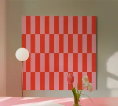Faites monter la température avec ce motif à carreaux rouge-orange rétro. Les carreaux groovy et les blocs de couleurs vives font une déclaration audacieuse, équilibrant le style nostalgique des années 70 avec le minimalisme moderne. Une œuvre d'art murale éclectique parfaite pour ajouter de la chaleur, de l'énergie et un design vibrant à votre décoration intérieure.