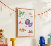 un beau design pour la cuisine et la salle à manger, différentes sortes de légumes, texte en anglais