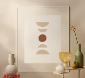 Ce design minimaliste aux formes géométriques dans des tons chauds de terre combine des demi-cercles et des cercles pour créer un ensemble harmonieux. Les lignes épurées et le choix de couleurs modernes créent une atmosphère calme et élégante, parfaite pour les amateurs d'art qui apprécient le style scandinave ou boho. Idéal pour les tableaux muraux, les tasses, les coussins ou les coques de téléphone portable, ce motif ajoute une touche élégante et contemporaine à n'importe quelle pièce.