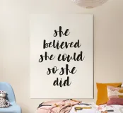 Le design motivant "She Believed She Could So She Did" inspire et encourage grâce à son message expressif. La typographie manuscrite en noir sur un fond clair confère à ce design une touche personnelle et moderne. Idéal pour tous ceux qui recherchent l'inspiration et le style au quotidien. Que ce soit sous forme de tableau mural, de tasse, de coussin ou de coque de téléphone portable, ce design apporte une énergie positive dans chaque pièce et constitue un cadeau parfait pour les femmes fortes et déterminées.