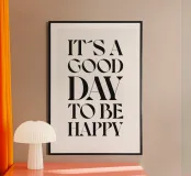C'EST UN BON JOUR POUR ÊTRE HEUREUX poster avec cadre en bois