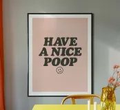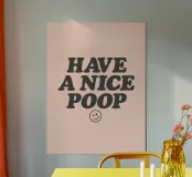 Ajoutez une touche ludique à votre salle de bains avec cette impression artistique impertinente "Have a Nice Poop", qui comporte des lettres audacieuses dessinées à la main et un smiley sympathique sur un fond blush doux. Parfaite pour ceux qui aiment un peu d'humour dans leur décor, cette pièce pleine d'esprit est un cadeau amusant pour les pendaisons de crémaillère, les anniversaires ou Noël. Idéal pour les amis, la famille ou tous ceux qui aiment rire, il apporte charme et personnalité à toute salle de bains ou espace invité, rendant chaque visite mémorable.