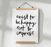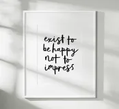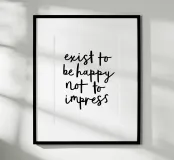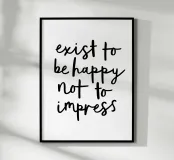 Embrassez l'authenticité avec notre impression artistique "Exister pour être heureux et non pour impressionner". Ce design élégant présente une écriture noire expressive sur un fond blanc net, créant un rappel visuel puissant du véritable but de la vie. Parfaite pour les amateurs de soins personnels, les praticiens de la pleine conscience et tous ceux qui recherchent une dose quotidienne de sagesse, cette œuvre d'art polyvalente ajoute une touche de clarté à n'importe quel espace. Son style épuré et minimaliste lui permet de s'intégrer à différents thèmes de décoration tout en faisant une déclaration profonde. Laissez-vous inspirer par cette œuvre qui suscite la réflexion pour donner la priorité à votre propre bonheur et vivre de manière authentique.