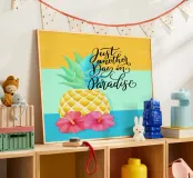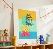 Magnifique motif coloré avec ananas, fleurs d'hibiscus et calligraphie cool au pinceau. Une belle phrase inspirante. Estival et tropical. Un jour de plus au paradis. Peut-être que ce motif te rappellera tes vacances. Certains produits (p. ex. rideau de douche, serviette de plage, serviette) ont un motif sans couture de fruits d'ananas et de fleurs d'hibiscus, sans slogan.