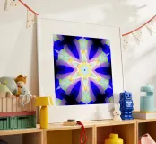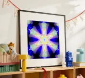 Kaléidoscope avec formes décorées en bleu, violet et vert poster