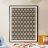 Un motif géométrique complexe présente des formes plus interconnectées dans des tons sourds de beige et de gris foncé, formant une structure en forme de grille. Le motif répétitif crée un effet d'illusion d'optique, attirant l'œil dans la trame complexe des lignes.