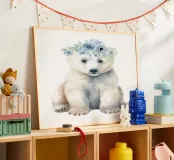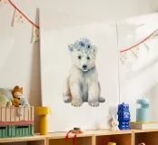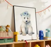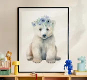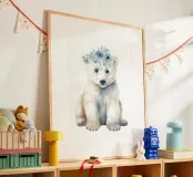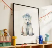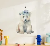 Ours polaire, illustration mignonne pour la chambre d'enfant, aquarelle florale poster
