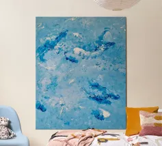 “Pixie Dust” is a dreamy abstract acrylic painting inspired by soft pastels, playful imagination, and the magical world I share daily with my now 7-year-old daughter. This artwork blends vibrant turquoise with gentle purple and airy white, creating a soothing yet uplifting color palette perfect for modern home decor. Ideal for art lovers who appreciate pastel wall art, turquoise abstract prints, and modern calming interiors, this piece adds a subtle sense of magic to any living room, bedroom, nursery, or creative workspace.