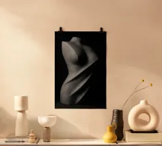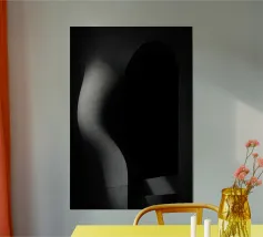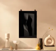 Quand la ville devient corps. Cette affiche capture l’instant où une courbe d’ombre épouse l’architecture. Dans un noir et blanc cinématographique, Paris se déforme et devient sensation. Un poster unique pour celles et ceux qui veulent suspendre le temps et accrocher un fragment de mystère.