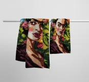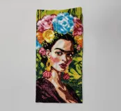 Découvrez Frida Kahlo réimaginée dans cette extraordinaire affiche d'art texturée, qui rappelle un travail à l'aiguille ou un perlage complexe. Ce portrait unique représente Frida avec son mono-sourcil emblématique et son regard intense, rendu avec un aspect tactile fascinant créé par d'innombrables petits éléments vibrants. Sa coiffe florale élaborée éclate avec des fleurs colorées en rose, bleu, orange et jaune, sur un riche fond vert feuillu. Cette œuvre d'art numérique de haute qualité, méticuleusement réalisée à 7000x5000 pixels en 300 dpi, offre des détails époustouflants et une expérience visuelle vraiment unique, parfaite pour une exposition.
