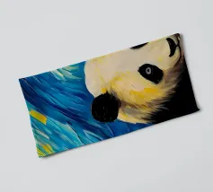Apportez de la joie et de la couleur à n'importe quel espace avec cette œuvre d'art fantaisiste représentant quatre pandas enjoués dansant sous un ciel nocturne étoilé et tourbillonnant. Inspiré par des coups de pinceau expressifs et des teintes oniriques, le dessin allie charme, mouvement et énergie vibrante. Parfaite pour les chambres d'enfants, les crèches et tous ceux qui aiment l'art mignon et exaltant, cette pièce ajoute chaleur et imagination à votre décor. Fusion délicieuse de fantaisie et d'art, elle ne manquera pas de susciter des sourires et d'illuminer votre mur de sa lueur nocturne magique.