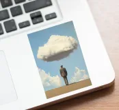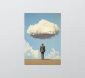 Un homme se tient dans le désert et regarde un grand nuage qui flotte au-dessus de lui.