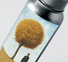 Stickers en film PP/PET avec laminage de protection et différentes structures de surface.