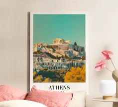 Entrez dans la majesté antique d'Athènes, en Grèce, avec cette impression d'art captivante de l'Acropole emblématique. L'image montre le Parthénon historique et les structures environnantes perchées au sommet de la colline accidentée, surplombant des ruines anciennes et un feuillage doré vibrant, le tout sous un ciel clair et azur. Ce poster numérique de qualité supérieure (7000x5000 pixels, 300 dpi) transmet magnifiquement la grandeur intemporelle et l'importance historique d'Athènes. Il est parfait pour ajouter une touche sophistiquée et culturellement riche à votre maison ou à votre bureau.