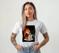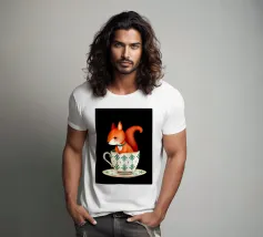Ecureuil tenant une tasse de café avec une peinture de style fauviste