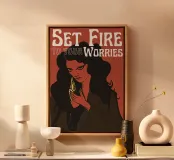 Mettez le feu à vos soucis - Illustration toile avec Caisse américaine