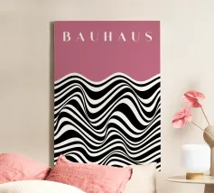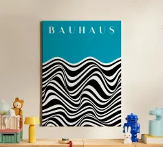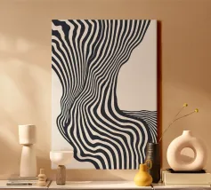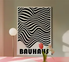 Poster abstrait Bauhaus lignes ondulées noir et blanc toile