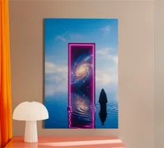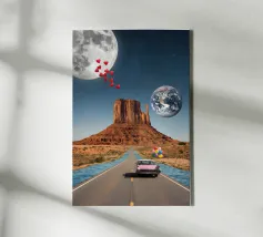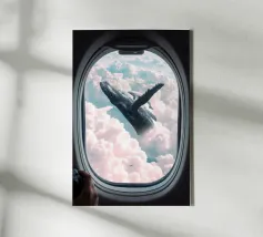 Découvrez la magie du voyage et du ciel nocturne grâce à cette œuvre d'art atmosphérique représentant une main qui touche délicatement le hublot d'un avion surplombant des dunes désertiques rougeoyantes. Un croissant de lune brille dans un ciel bleu profond rempli d'étoiles, créant un mélange serein d'errance et d'émerveillement. Les sables chauds et dorés contrastent magnifiquement avec les tons frais de la nuit, capturant le sentiment de solitude, de réflexion et de rêve au-dessus du monde. Parfait pour les amateurs de voyages, les minimalistes et les fans d'art cinématographique et de vues de fenêtre rêveuses.