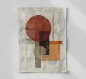 Une œuvre d'art abstraite audacieuse composée de cercles, de rectangles et de lignes fines en rouge rouille, noir, beige et orange. La finition texturée lui confère une touche vintage, ce qui en fait un objet idéal pour les intérieurs modernes, bohèmes ou du milieu du siècle.