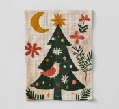Une charmante scène de Noël bohème avec un arbre décoré, un oiseau rouge, une lune dorée et des étoiles, accentuée par des fleurs ludiques et des textures vintage douces. Cette illustration fantaisiste apporte de la chaleur et de la joie à n'importe quel espace - parfaite pour un décor de fête, mais suffisamment intemporelle pour les chambres d'enfants et les espaces de vie confortables tout au long de l'année. Un mélange magique de joie de Noël et de style bohème.