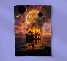 Cette œuvre d'art sombre et cinématographique mélange la science-fiction et l'horreur dans une scène surréaliste puissante. Un astronaute traverse une forêt brumeuse et hantée, entouré de mains sinistres émergeant de l'eau. Dans sa main, un cœur incandescent jette une lumière chaude sur l'atmosphère bleue et froide, symbolisant l'espoir, l'humanité et la survie dans l'inconnu. Les lumières sombres, les arbres brumeux et les contrastes dramatiques créent une histoire visuelle intense et émotionnelle. Parfait pour les amateurs de fantaisie sombre, d'art spatial, de thèmes psychologiques et de décoration murale atmosphérique, ce dessin ajoute du mystère et de la profondeur.