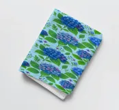 Joli motif floral d'hortensia avec des fleurs d'hortensia bleues luxuriantes et vibrantes avec des feuilles vertes, sur un fond bleu clair.