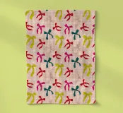 Un motif ludique de nœuds colorés en rouge, rose, sarcelle, vert lime et pêche, éparpillés sur un fond pêche doux avec des accents d'étoiles blanches. Ce motif joyeux et festif apporte un charme fantaisiste, parfait pour ajouter une touche féminine et joyeuse à votre espace. Il convient parfaitement à l'esthétique des emballages cadeaux, à la décoration inspirée de la mode ou à tous ceux qui aiment les motifs à la fois audacieux et délicats. Conçu par showmemars