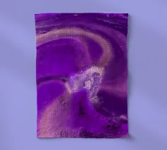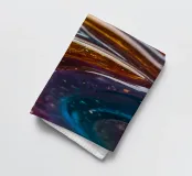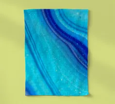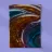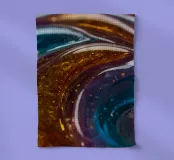 Cette œuvre d'art en résine présente un tourbillon complexe de couleurs et de textures vibrantes, avec des bleus profonds, des ors riches et un éventail d'accents lumineux. Les détails mettent en évidence le talent artistique de l'artiste.