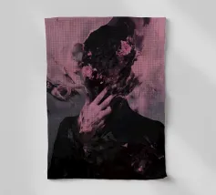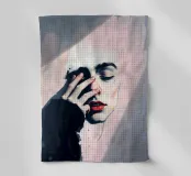 Cette œuvre d'art représente une personne exprimant une profonde émotion, partiellement cachée par une main. La lumière qui frappe le visage ajoute de l'intensité à l'expression et à l'atmosphère.