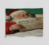 Le Père Noël s'accorde une pause bien méritée après une longue nuit : satisfait, il est allongé dans son lit et se détend en lisant le journal avec le titre "Merry Christmas". L'éclairage chaleureux, son sourire joyeux et l'ambiance conviviale dégagent une pure satisfaction et une joie festive - un motif de Noël plein d'humour et qui réchauffe le cœur.