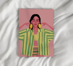 Vue aérienne d'une femme allongée sur un tapis à motifs, absorbée par un livre, avec un chat dormant à proximité. La scène est un instantané douillet et intime d'un loisir tranquille et confortable à la maison.