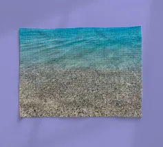 Mer transparente avec plage de sable, inscription "libre".