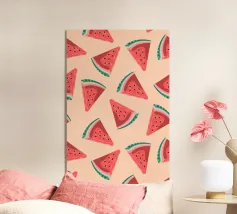 Ce poster numérique rafraîchissant présente un motif ludique et répétitif de tranches de pastèque éclatantes. Chaque tranche est représentée avec une chair rouge juteuse, des graines foncées et une écorce verte croustillante, le tout dispersé sur un fond doux de pêche pâle. Les couleurs gaies et le motif répétitif créent une esthétique amusante, estivale et pop art. Ce poster numérique de haute qualité, proposé à 7000x5000 pixels et 300 dpi, apporte un art excellent et une ambiance joyeuse et fraîche à n'importe quel espace.