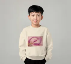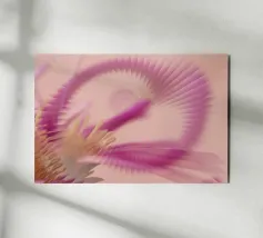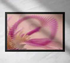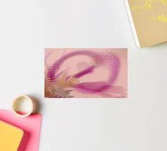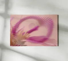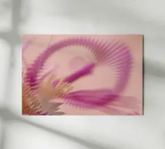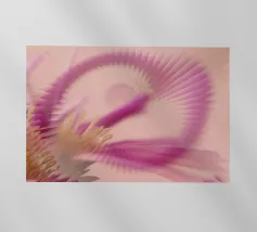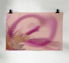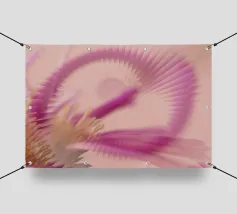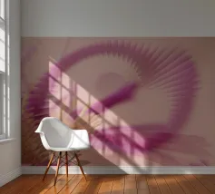 Une image d'un motif abstrait et dynamique dans les couleurs rose, jaune et violet. Circulaire et tournant.
