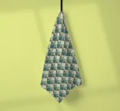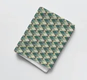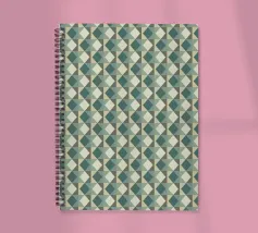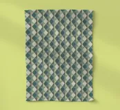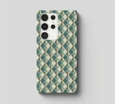 Un motif géométrique répétitif présente des losanges imbriqués dans des tons de vert et de beige. Le motif crée une impression de profondeur et de symétrie, évoquant une esthétique moderne et minimaliste.
