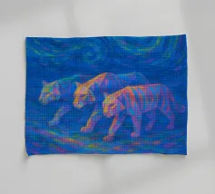 Apportez de la joie et de la couleur à n'importe quel espace avec cette œuvre d'art fantaisiste représentant quatre pandas enjoués dansant sous un ciel nocturne étoilé et tourbillonnant. Inspiré par des coups de pinceau expressifs et des teintes oniriques, le dessin allie charme, mouvement et énergie vibrante. Parfaite pour les chambres d'enfants, les crèches et tous ceux qui aiment l'art mignon et exaltant, cette pièce ajoute chaleur et imagination à votre décor. Fusion délicieuse de fantaisie et d'art, elle ne manquera pas de susciter des sourires et d'illuminer votre mur de sa lueur nocturne magique.