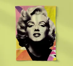 Andy Warhol, le roi du pop art, dans un hommage avec twist : une bulle vide flotte au-dessus de sa tête - sur un fond jaune vif, combiné avec des allusions CMYK colorées en cyan, magenta et noir. Entre portrait, pop et post-ironie. Fait partie de la série Geometric Masters, qui déconstruit des figures artistiques iconiques par des formes et des couleurs géométriques. Bruyant, intelligent, moderne.
