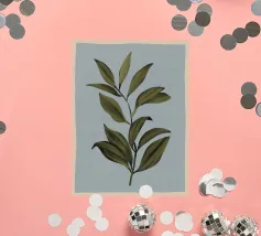 Composition simple avec des tons olive doux et un équilibre naturel.