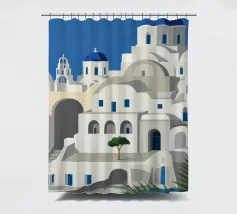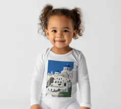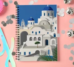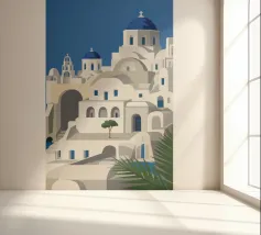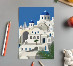 Une vue classique et pittoresque des églises emblématiques aux dômes bleus et des bâtiments blancs blanchis par le soleil de Santorin, en Grèce, surplombant la mer Égée d'un bleu profond sous un ciel parfait.