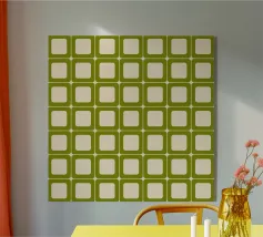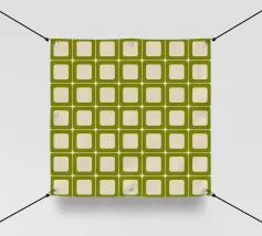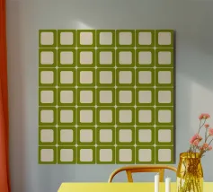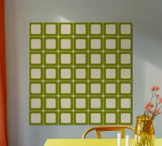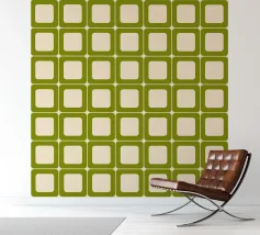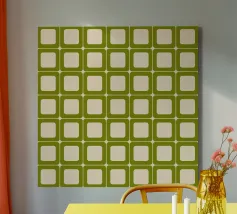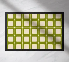 Ce design présente des carrés verts rétro d'une esthétique clairement inspirée des années 60. Sa disposition géométrique fraîche ajoute une subtile touche de couleur tout en restant propre et moderne. Idéal pour une décoration éclectique et moderne.