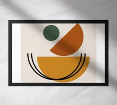 Explorez l'abstraction géométrique équilibrée avec cette impression d'art graphique moderne. Il s'agit d'une composition abstraite captivante de formes géométriques simples, dont un cercle, des demi-cercles et des lignes courbes, dans des couleurs vives (vert, orange, marron, noir), disposées de manière à former un dessin abstrait équilibré. Cette œuvre d'art incarne les principes de la forme, de la couleur et de la composition abstraite, avec une touche contemporaine influencée par le design moderniste, mettant en évidence l'interaction de formes géométriques simples et d'une palette de couleurs sophistiquée. Ce fichier d'art numérique de haute qualité offre une résolution étonnante de 7000x5000 pixels à 300 dpi.