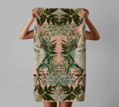 "Les motifs et dessins de Burcu Korkmazyurek passent sans problème de la mode à l'impression sur toile. Ses motifs floraux et animaux réalistes complètent ou contrastent avec des arrière-plans qui vont de l'eau chaude à l'eau froide, en passant par l'eau froide."