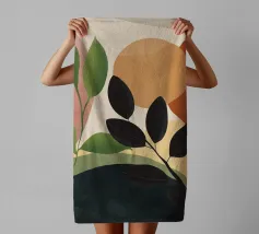 Une composition élégante et minimaliste présentant des formes botaniques esquissées sur des blocs de couleurs sourdes et organiques. L'œuvre mêle dessins linéaires et formes abstraites pour une esthétique naturelle sophistiquée et moderne.