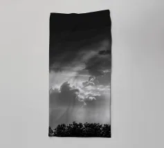 Photos en noir et blanc d'un champ récolté. La structure géométrique contraste avec les nuages.