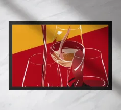 "A Sip of Reflection" est un hommage subtil à la simplicité et à la beauté des choses simples. Des tons apaisants et des lignes modernes s'associent pour créer une œuvre d'art à la fois apaisante et sophistiquée. Ce design est idéal pour ceux qui recherchent un équilibre entre un style minimaliste et un goût pour le bon vin. Parfait pour une salle de détente ou une cuisine, il vous invite à ralentir et à apprécier les moments de calme tout en rehaussant votre espace d'une palette de couleurs rouges douces et harmonieuses. Un must pour les amateurs de vin élégants.