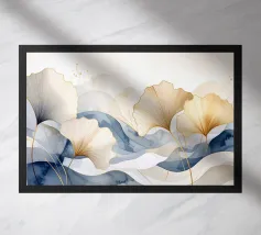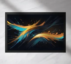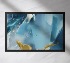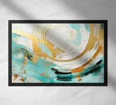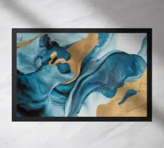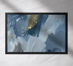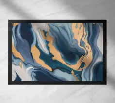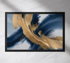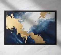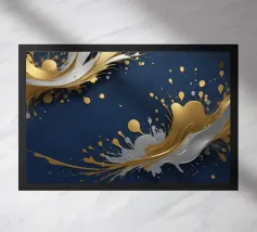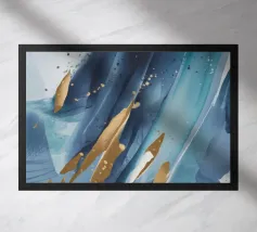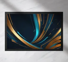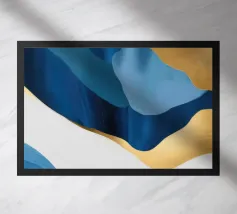 Cet élégant arrière-plan abstrait présente des éléments dorés et argentés entrecoupés d'accents circulaires sur une toile bleue riche, créant un impact visuel saisissant adapté aux projets créatifs.