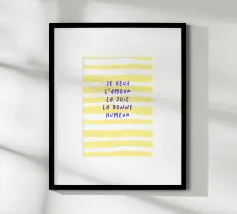 Les affiches typographiques sont parfaites comme élément central ou intégrées dans un mur de galerie. Un mélange de styles d’écriture différents ou une association avec des motifs abstraits et des photographies crée un ensemble harmonieux. Les designs en noir et blanc sont particulièrement élégants, mais des accents dorés ou pastel apportent une touche moderne.