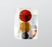 Une œuvre d'art abstraite audacieuse composée de trois grands cercles empilés verticalement dans des couleurs rouge foncé, jaune doré et noir. Les couches texturées et les fins détails linéaires créent de la profondeur et du mouvement, tandis que le fond neutre apporte de l'équilibre. Cette composition saisissante allie un design moderne à une touche rétro, ce qui en fait une pièce de choix pour les intérieurs contemporains, industriels ou éclectiques.